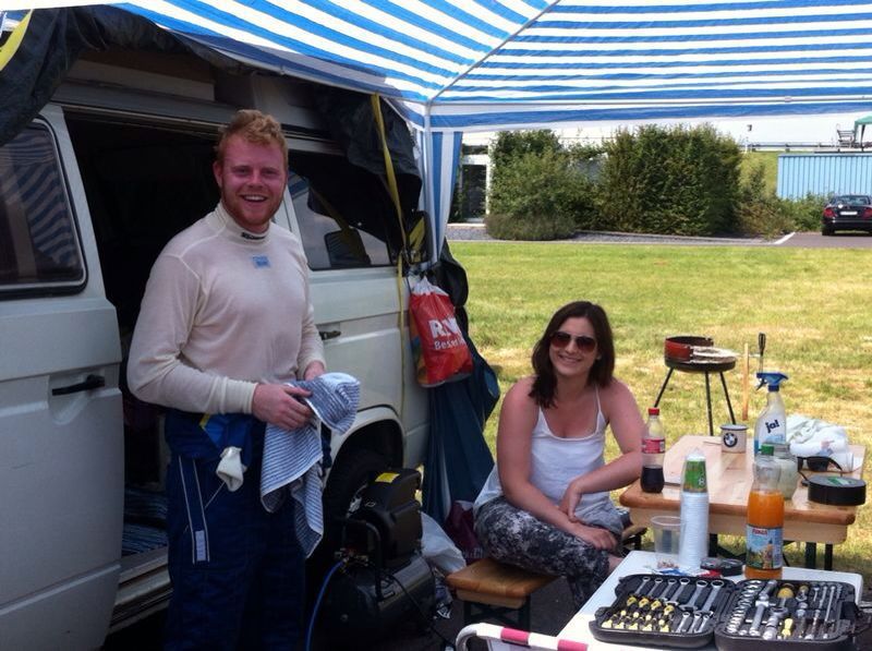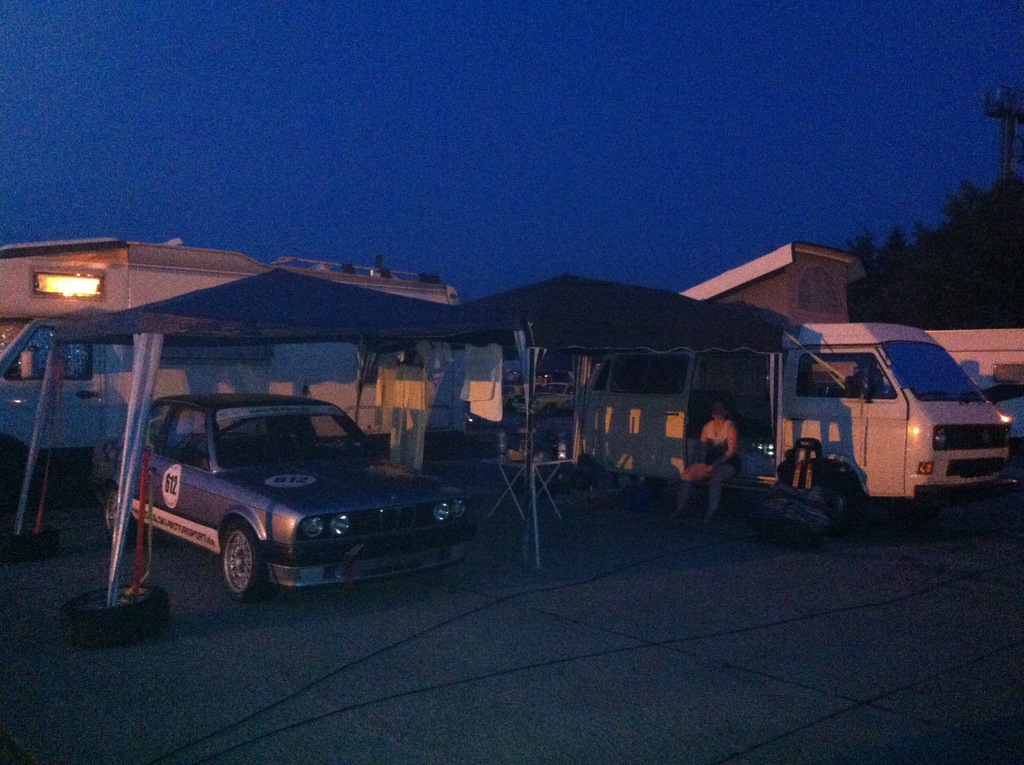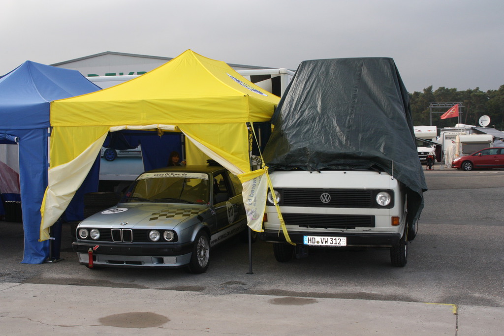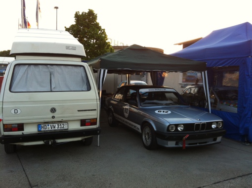 Nach Vorbereitung des VW T3 Campingbus kamen wir mit unserem Rennauto im Gepäck, dem nötigen Werkzeug und sämtlichen Reifensätzen im Fahrerlager in Hockenheim an.