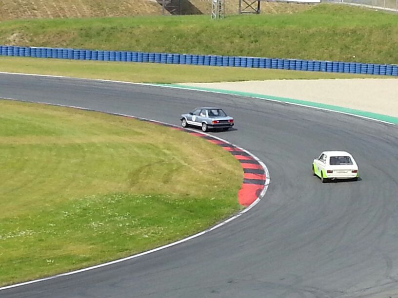 Im Training gingen wir erstmals mit geänderter Fahrwerksabstimmung und neuem Motor auf die Strecke. Unter Beobachtung der Öl- und Wassertemperatur und einer Drehzahlbegrenzung von nicht mehr als 6.000 U/min konnten wir direkt die persönliche Bestzeit erzielen.
