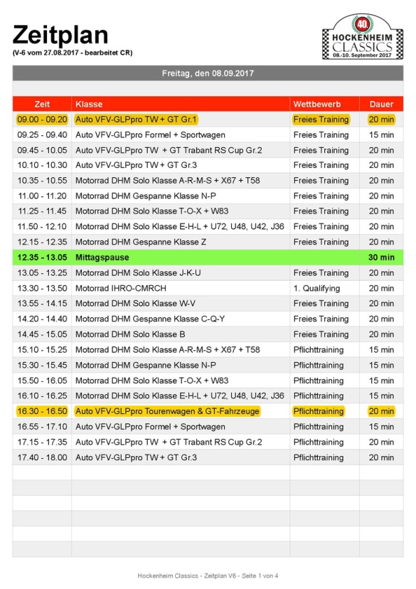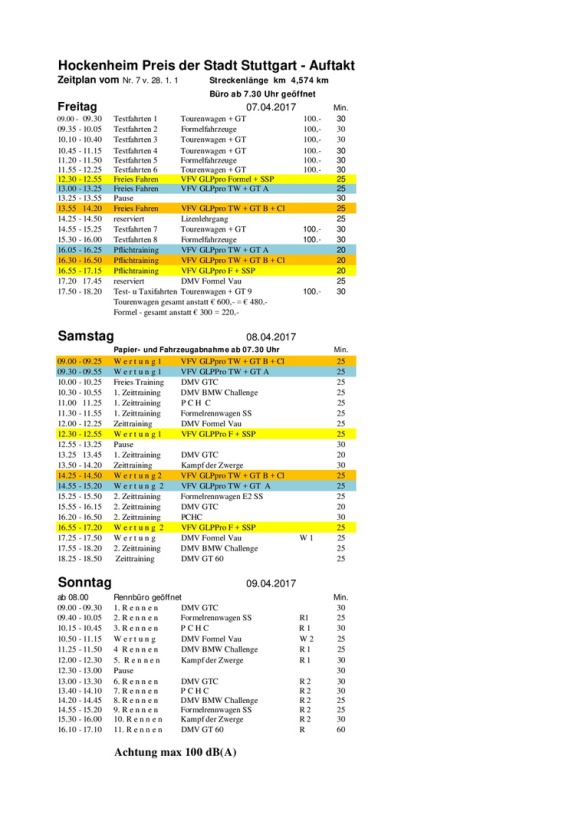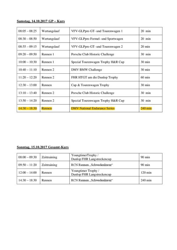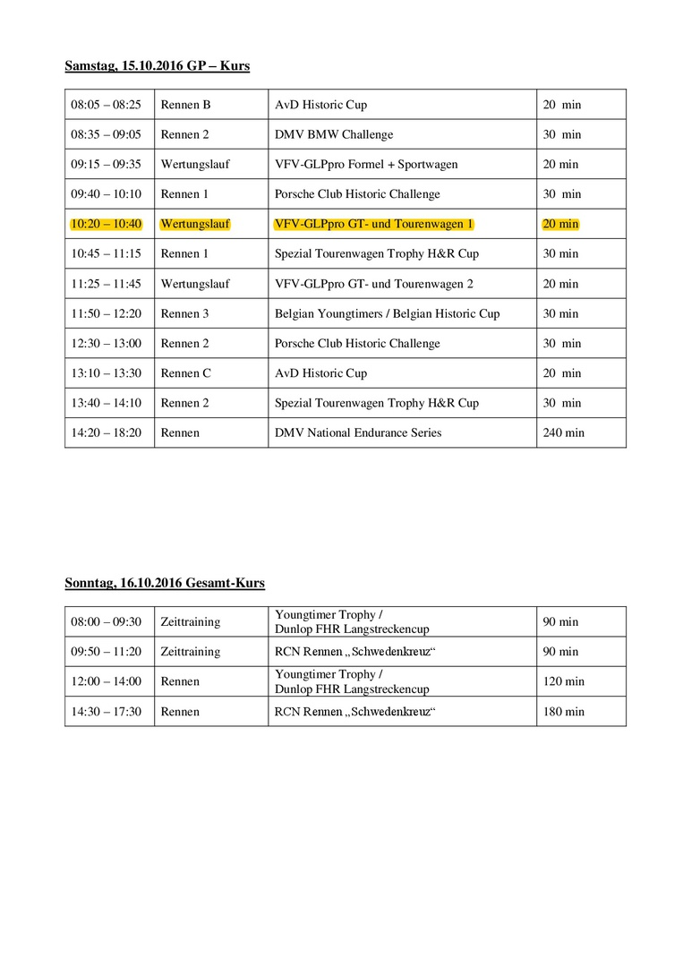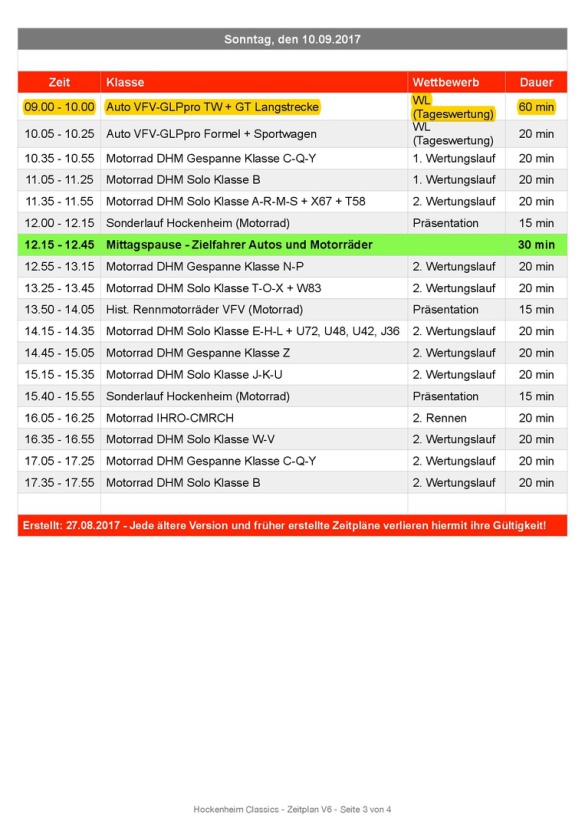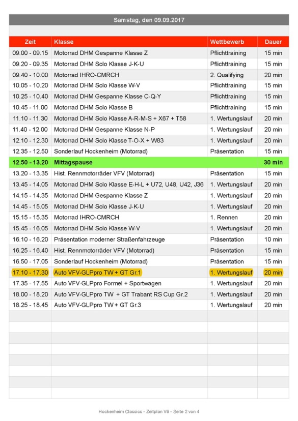 Nachfolgend findet ihr den Zeitplan der Veranstaltung, für alle diejenigen die mit uns Rennluft schnuppern wollen.
